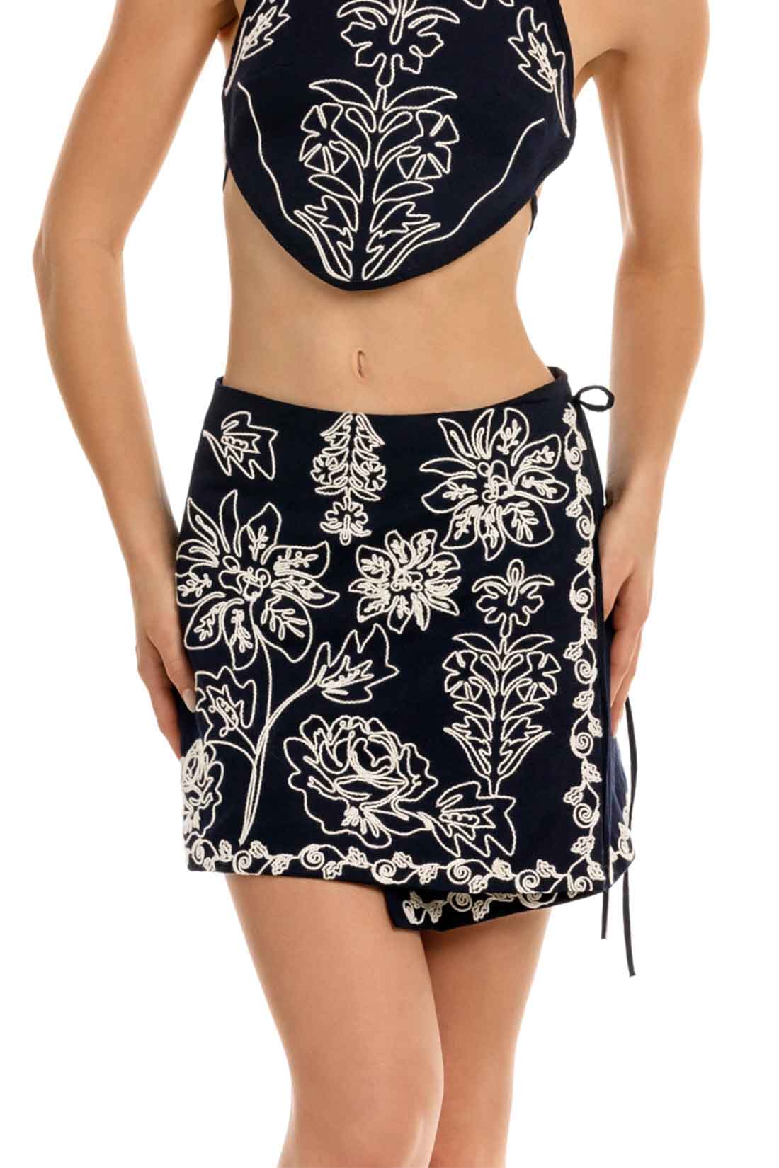 The Danina Skirt is all about versatility with a touch of artistry. Featuring intricate machine-embroidered florals and delicate trim details, it’s designed for an adjustable fit that moves with you.