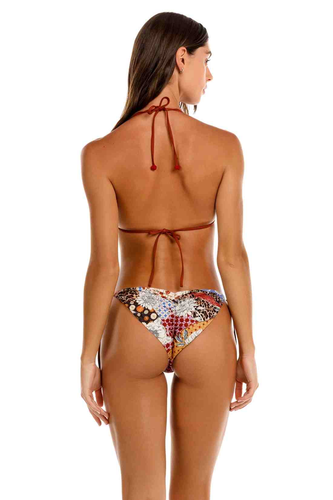 Embrace versatility and style with the Agua Bendita Lolita Alegria Quilt Bikini Set. This reversible top features a classic triangle silhouette with an adjustable fit and removable pads for personalized comfort. One side showcases a signature patchwork print, while the other brings bold leopard flair, both accented by handmade beaded strap tips. Crafted from sustainable fabric with UPF 50+ protection, this bikini set combines eco-conscious design with fashion-forward appeal for your perfect beach day.
