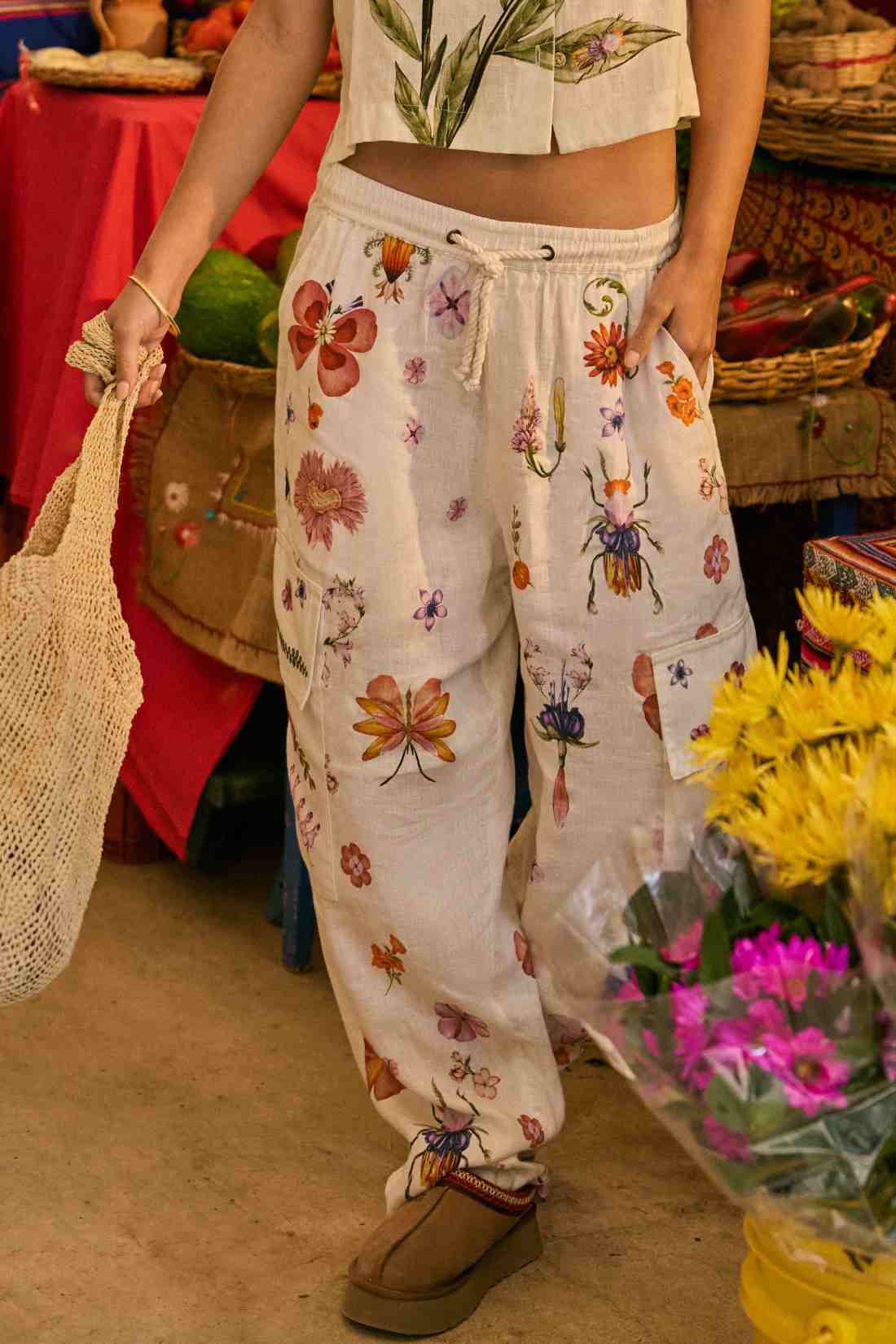 The Seraphine Pants strike the perfect balance between soft and structured. Made from breathable linen, they feature a relaxed silhouette with an elastic waistband and adjustable drawstring for all-day ease. The botanical placement print adds a romantic edge, while the side and cargo pockets lend a utilitarian twist that keeps it effortlessly cool.