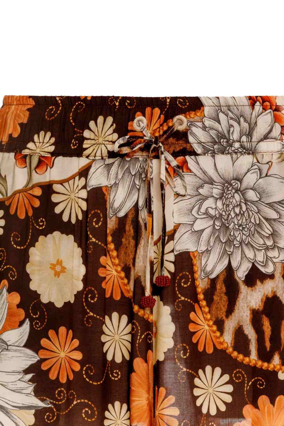 • Placement Print • Handmade Lace Details • Adjustable Lace Tie • Elastic Waist • Side Pockets