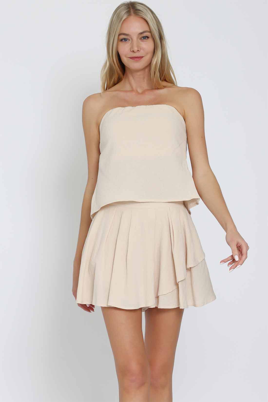 Beige Tube Skort Set