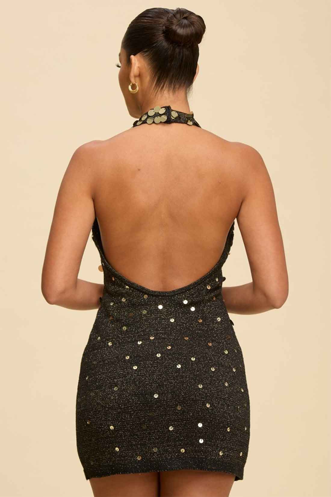 Elevate your night out with this stunning Black Sequin Knit Mini Dress. Crafted from luxurious knit fabric adorned with shimmering sequins, this dress catches the light with every movement, ensuring you'll turn heads wherever you go. The flattering mini silhouette offers a modern, confident look perfect for parties, clubs, or special occasions. The soft knit construction provides comfort without compromising on glamour, making it easy to wear all evening long. Whether you're dancing or mingling, this dress delivers the perfect blend of sparkle and sophistication for an unforgettable night.