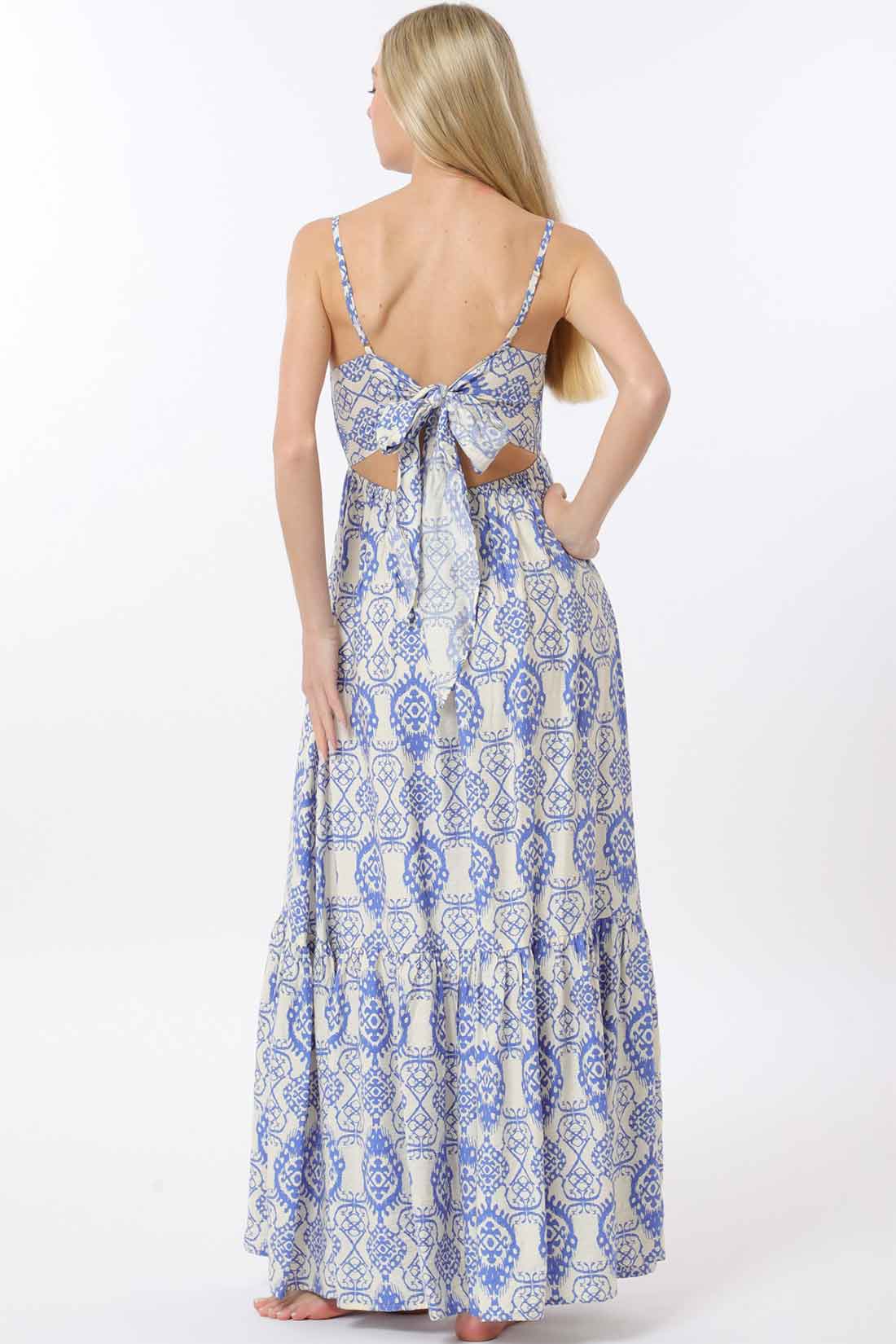 This Ivory Blue Printed Maxi Dress features thin adjustable straps and an elastic back waist for a perfect, flattering fit. Its flowing silhouette combines comfort and elegance, making it ideal for any occasion where you want to feel effortlessly stylish and confident. Embrace ease without sacrificing charm in this versatile maxi dress.