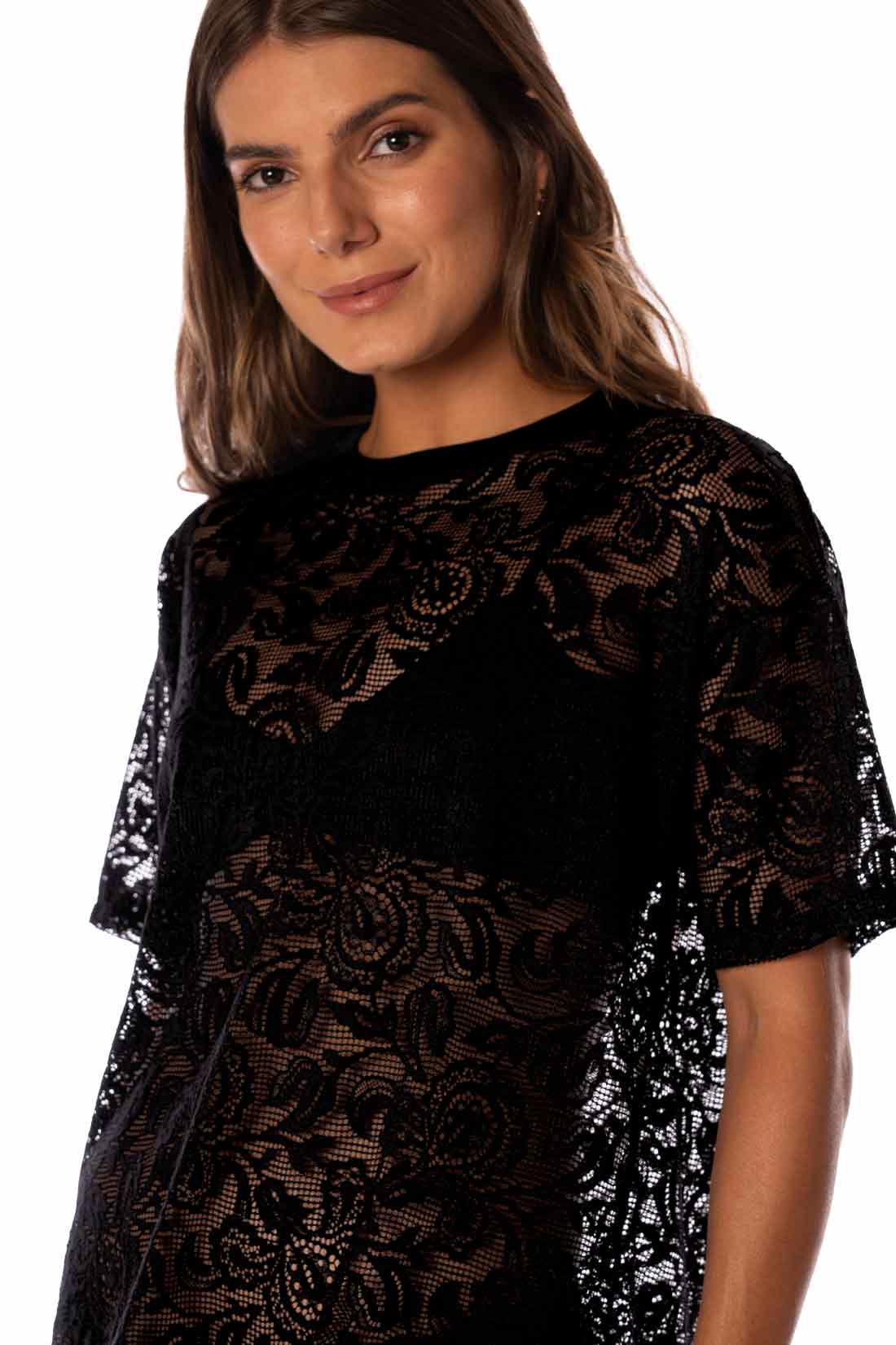 Sporty but sheer, the lace tee has the most romantic vibe, plus a ringer neckline to keep things casual.