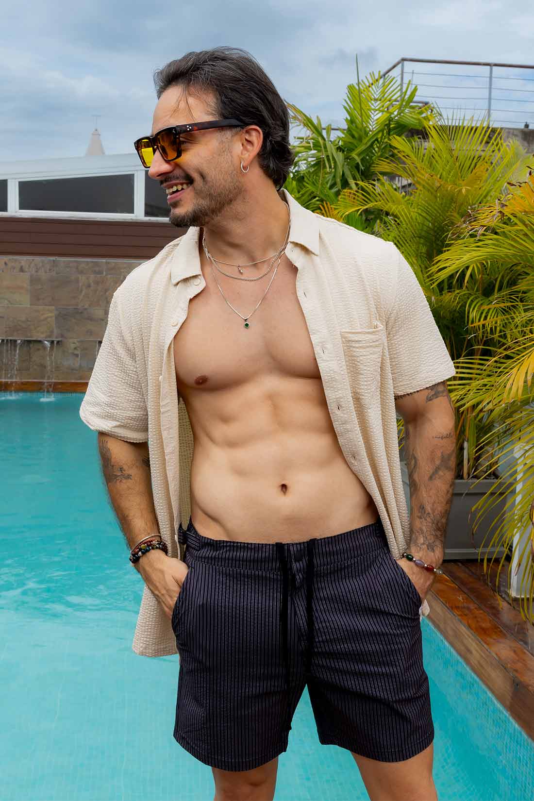 Make a splash this season in our Navy Microseersucker Trunk, featuring classic striped detailing that never goes out of style. The lightweight microfiber blend—92% polyester and 8% spandex—delivers exceptional comfort and flexibility for all-day wear, whether you're lounging poolside or catching waves. At 17 inches, this trunk offers the perfect balance of coverage and freedom of movement. The breathable seersucker texture keeps you cool and dry, while the durable fabric resists fading and maintains its shape through countless adventures. Elevate your swim wardrobe with timeless sophistication and unbeatable performance.