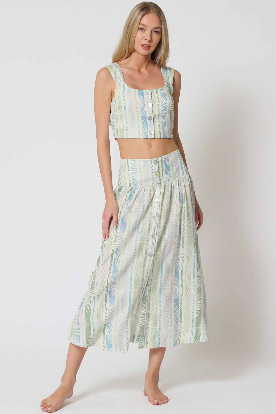 Oatmeal Striped Midi Skirt Set