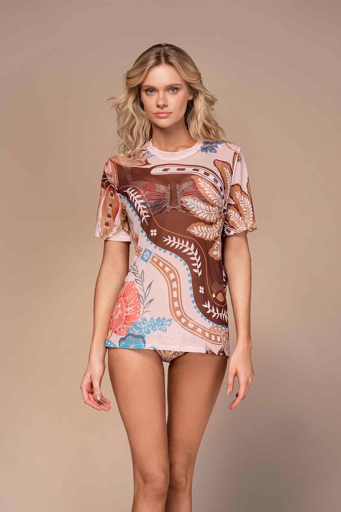 Elevate your wardrobe with this effortless mesh tee that strikes the perfect balance between coverage and breathability. The semi-sheer fabric creates an airy, contemporary look while the relaxed loose fit ensures all-day comfort. Featuring a classic crew neckline and short sleeves, this versatile piece layers beautifully or stands alone as a statement piece. Perfect for casual outings, beach days, or whenever you want to stay cool without sacrificing style.