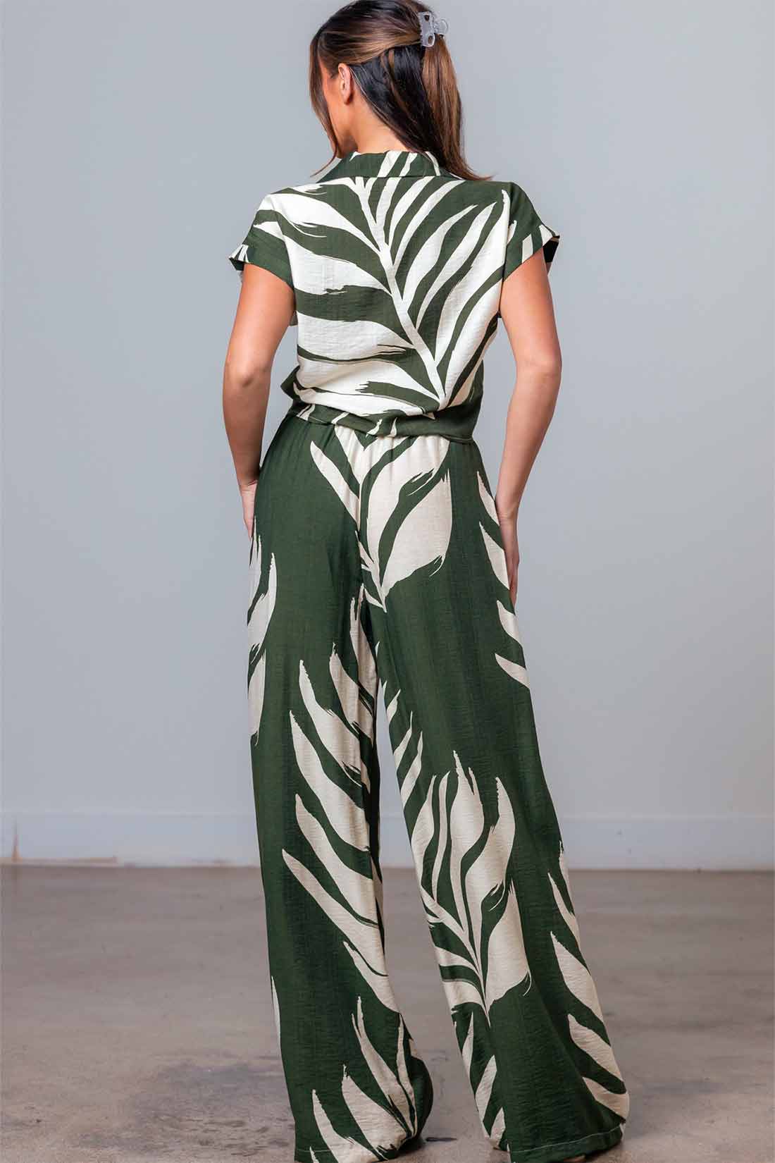 Olive Linen Leaf Pants Set